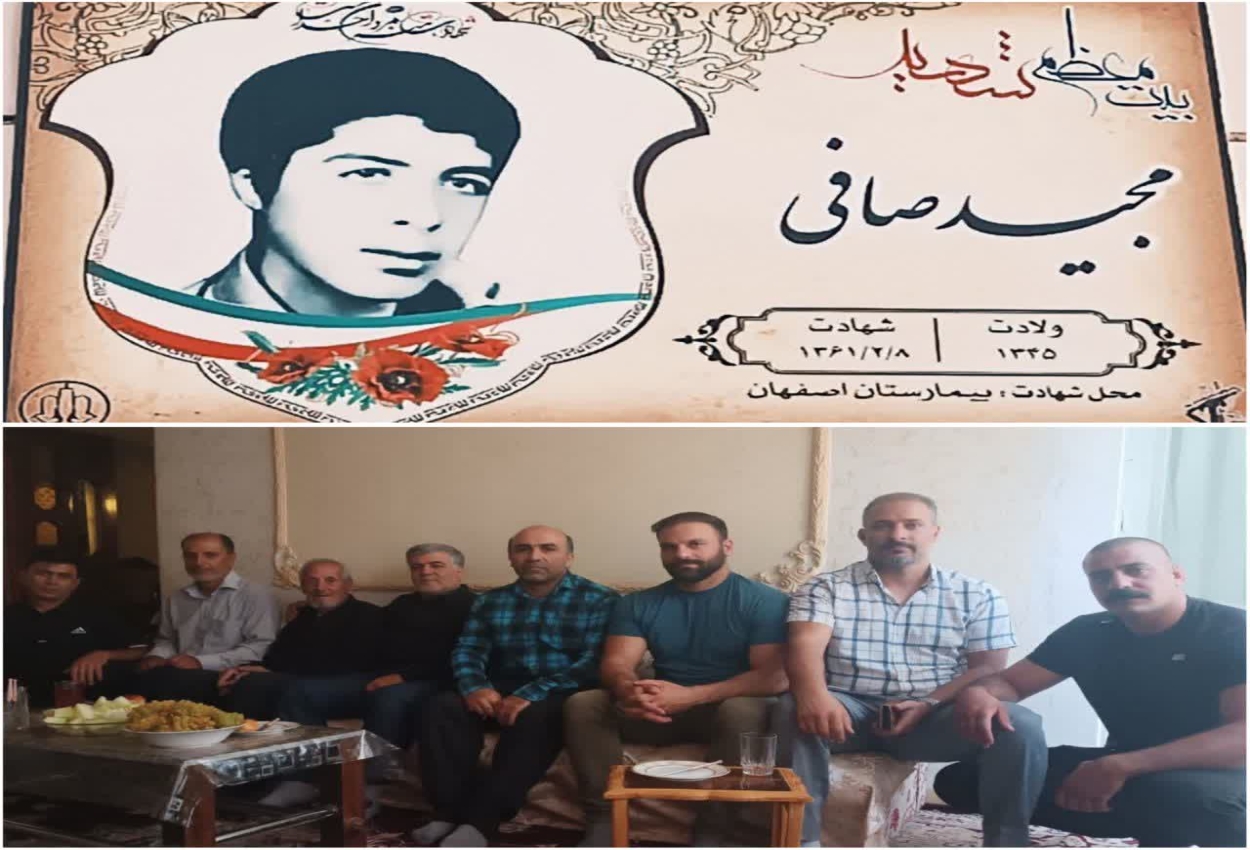 اعضاء هیات و تعدادی از مربیان کُشتی شهرستان گلپایگان در روز ملی کشتی با حضور در منزل شهید والامقام مجید صافی ضمن قرائت فاتحه به مقام شامخ این شهید ادای احترام نمودند