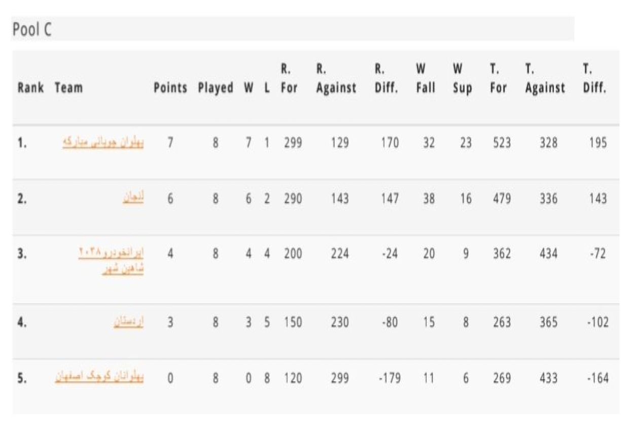 مجموع نتایج مسابقات دور رفت و برگشت گروه C لیگ کشتی آزاد نونهالان