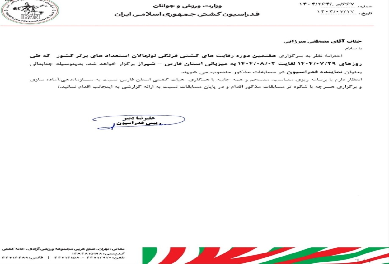 مصطفی میرزایی رئیس هیات کشتی استان اصفهان بعنوان نماینده فدراسیون کُشتی جمهوری اسلامی ایران در مسابقات کشتی فرنگی استعدادهای برتر کشور معرفی شد