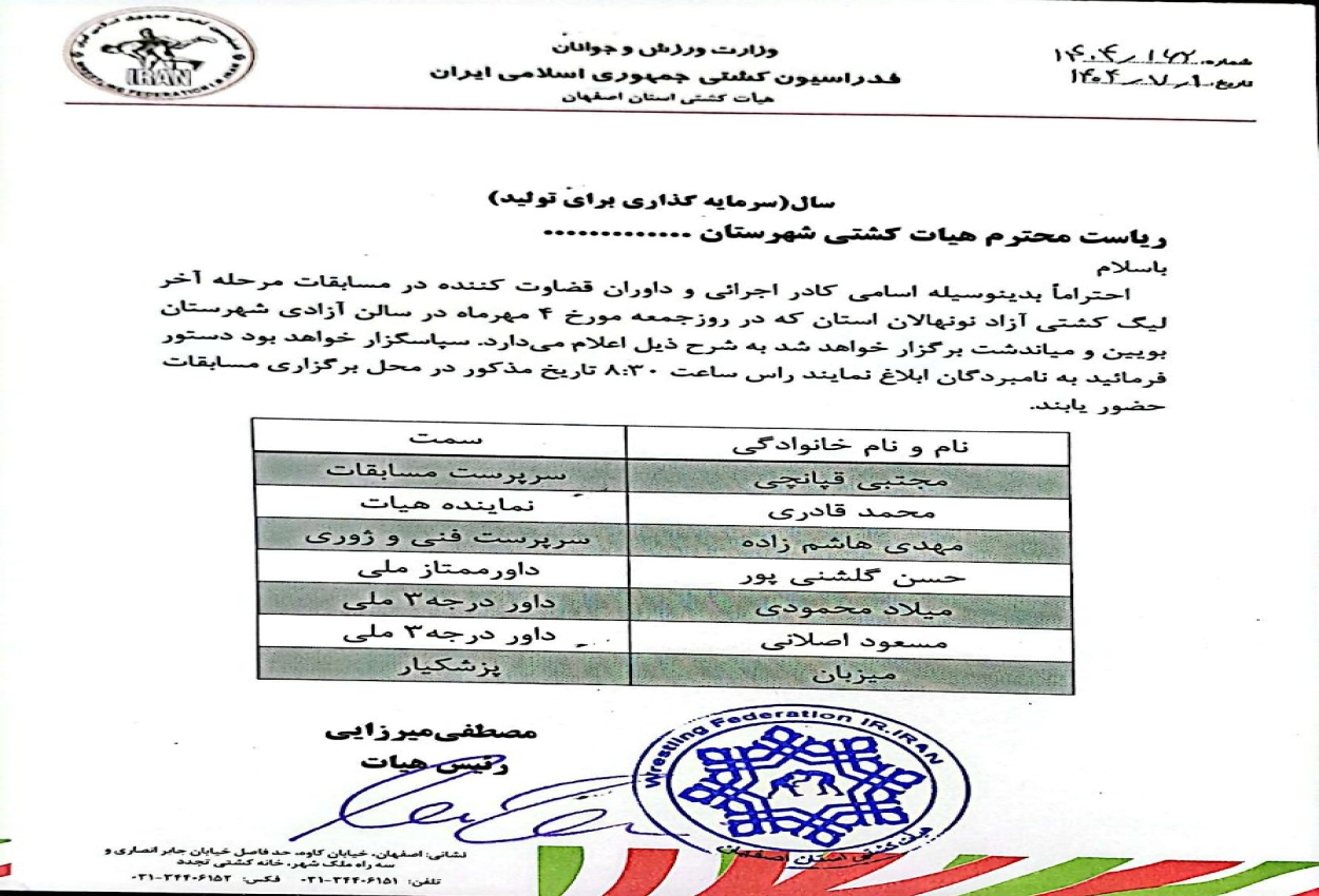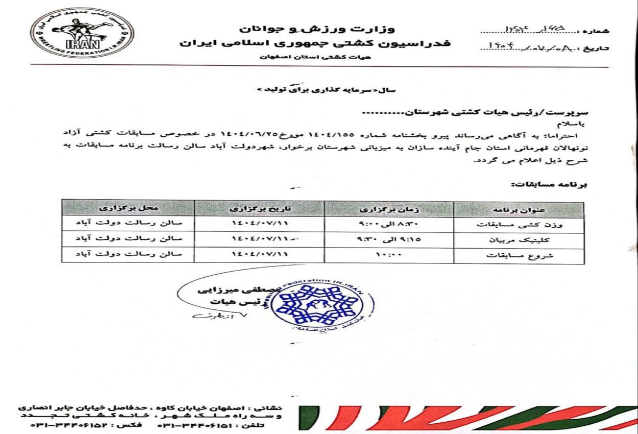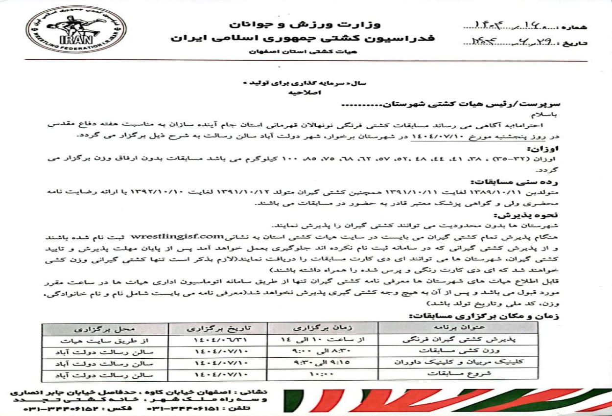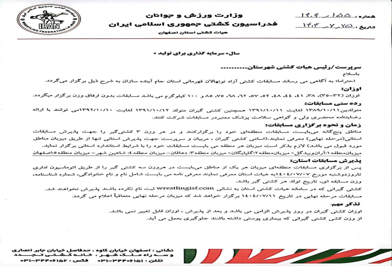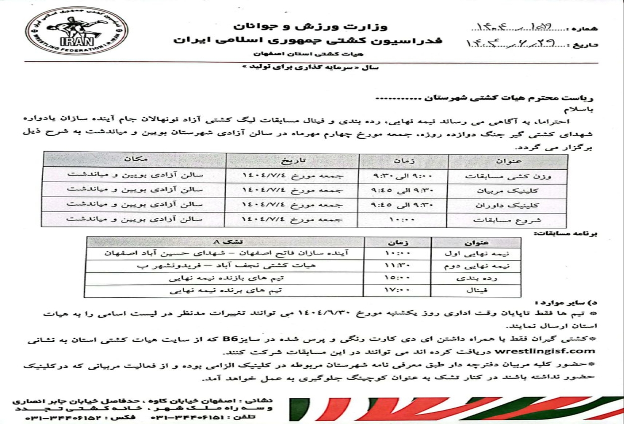 بخشنامه مرحله آخر مسابقات لیگ کشتی آزاد نونهالان استان جام آینده سازان یادواره شهدای کشتیگیر جنگ دوازده روزه