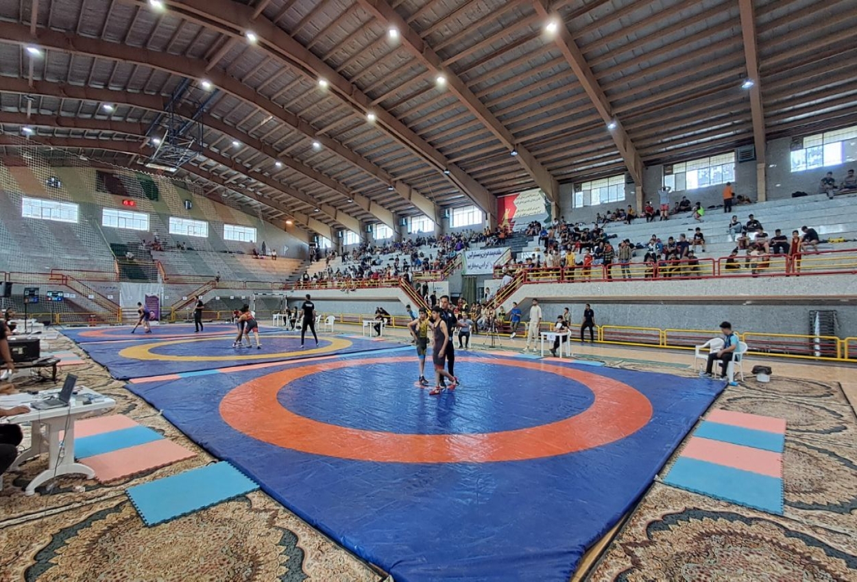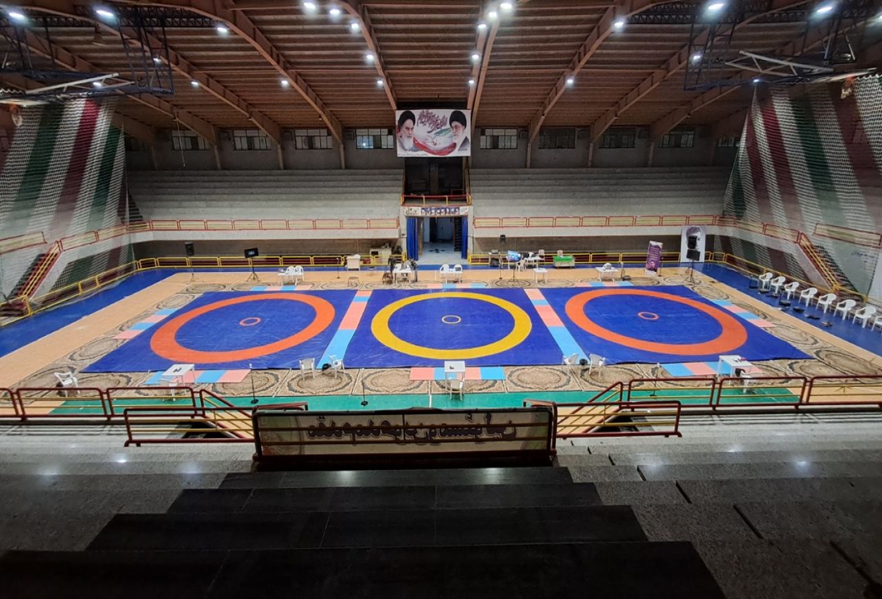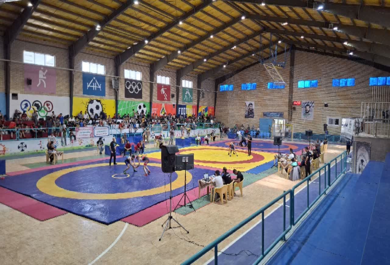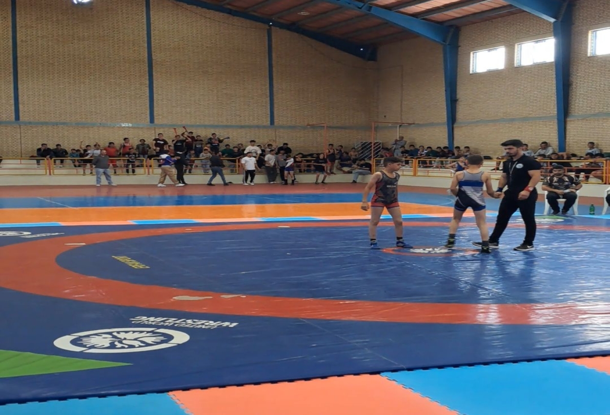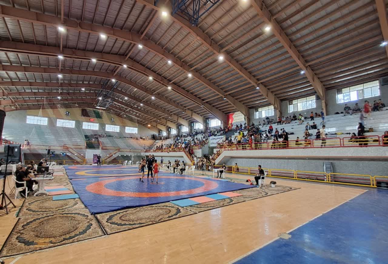 نمایی از سالن برگزاری مسابقات کشتی آزاد و فرنگی نونهالان قهرمانی استان اصفهان در شهرستان برخوار