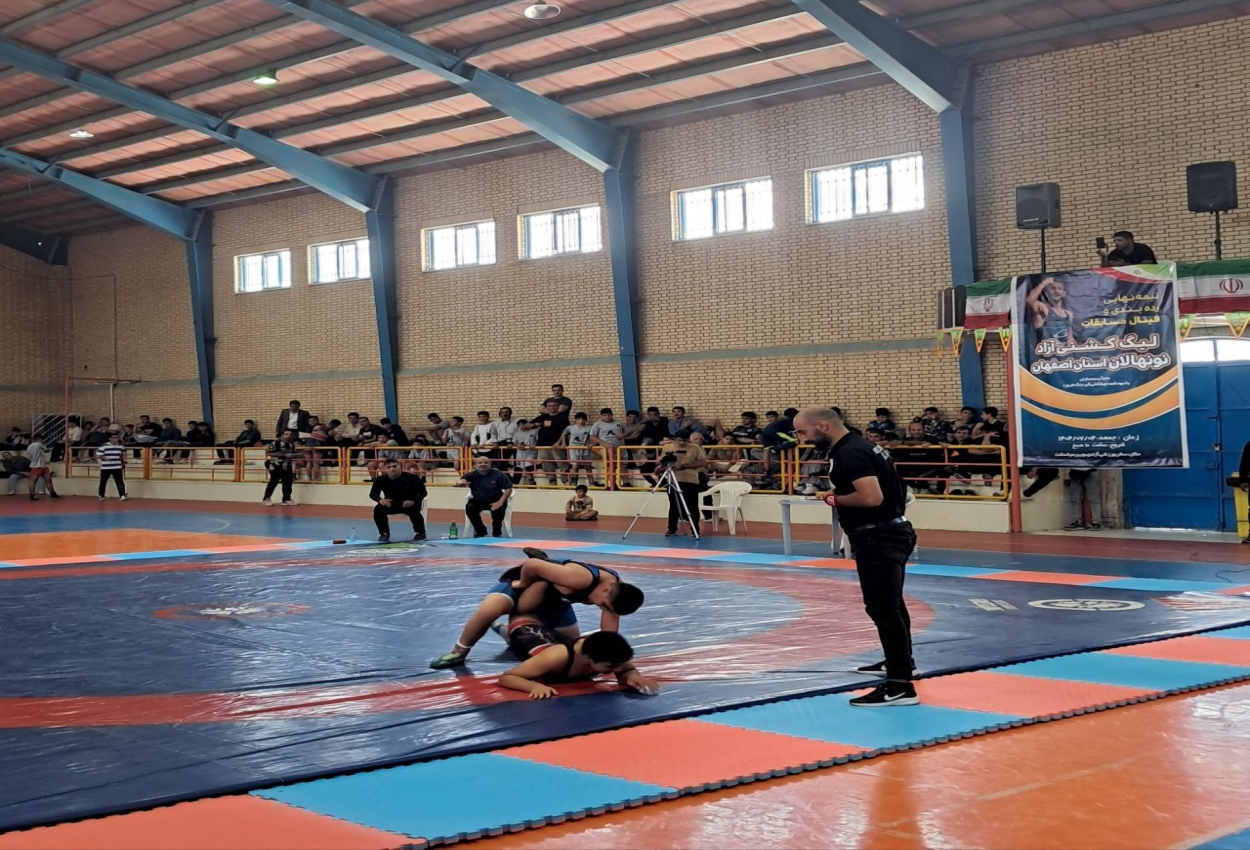 هماکنون سالن برگزاری مسابقات کشتی فرنگی نونهالان قهرمانی استان به میزبانی سالن رسالت شهرستان برخوار
