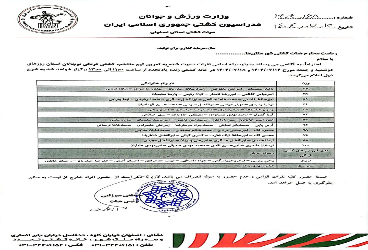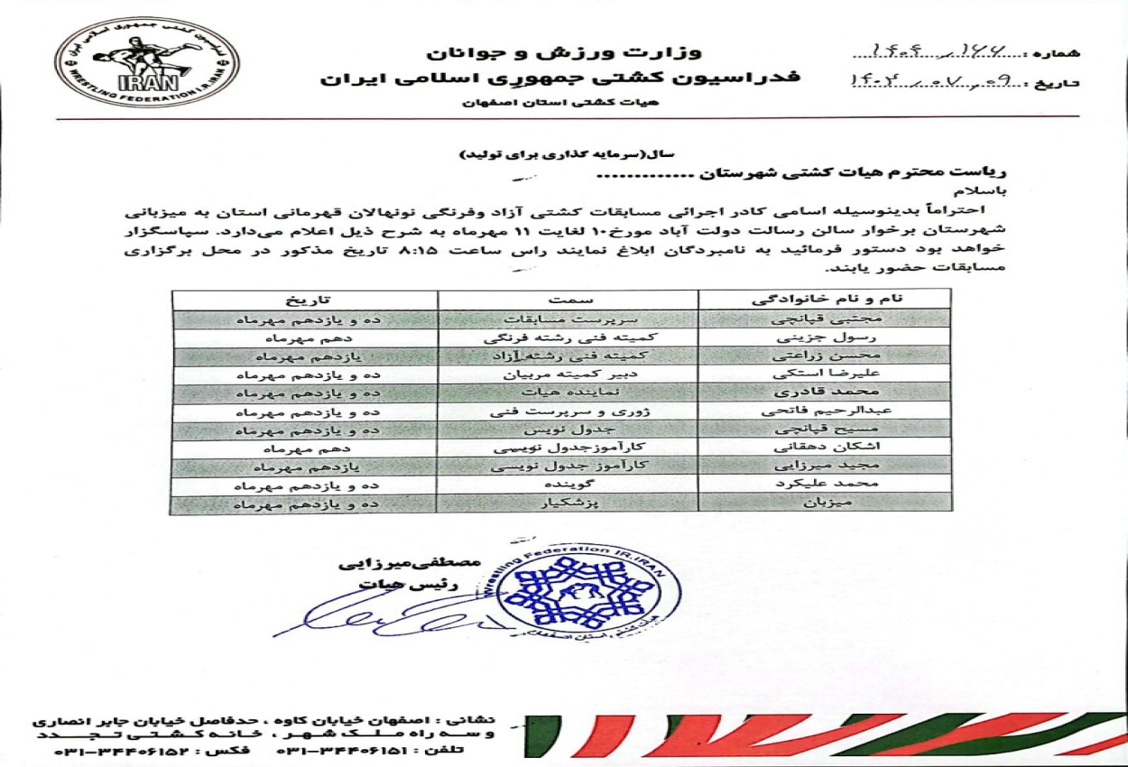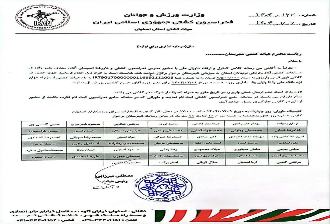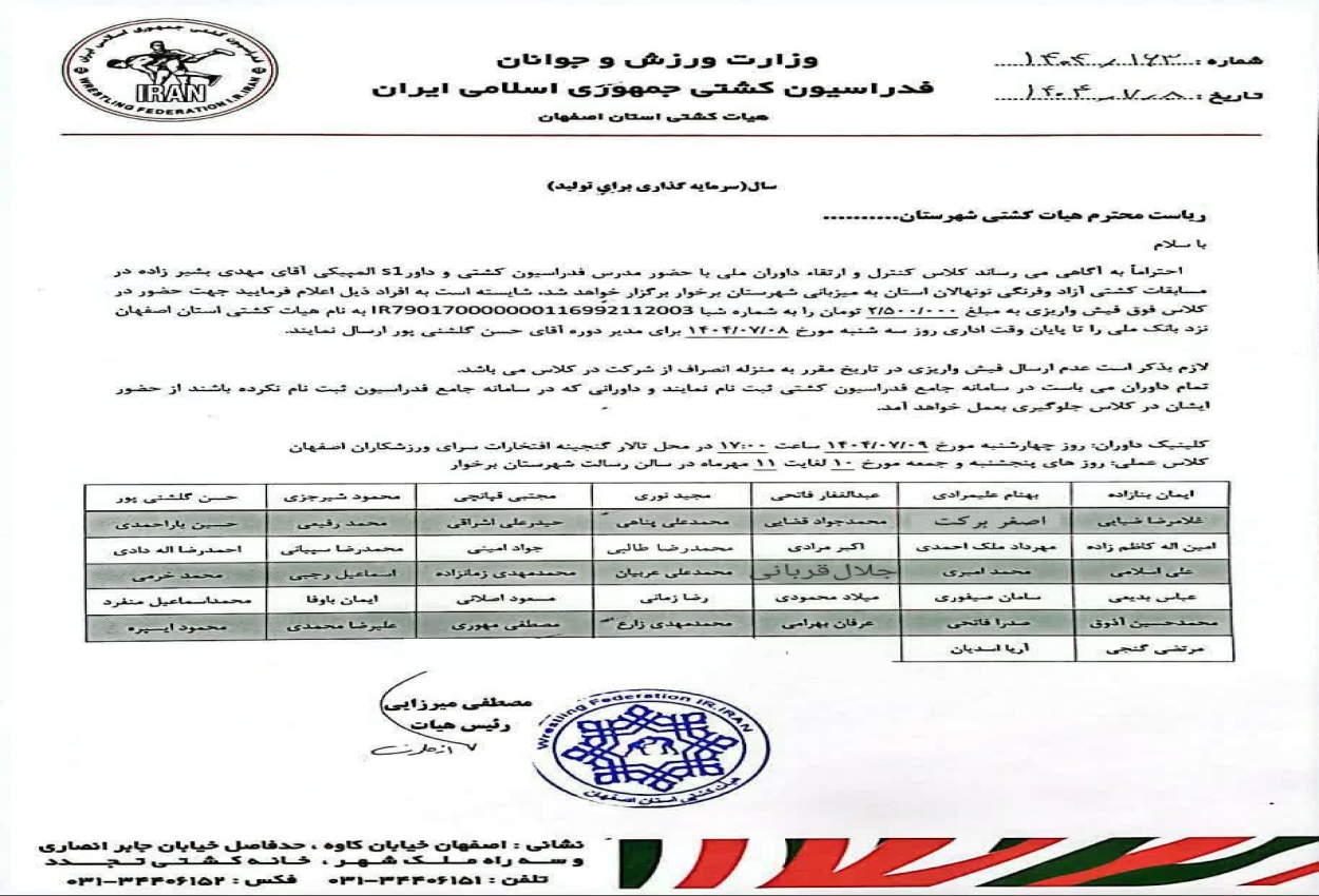اصلاحیه اسامی نفرات حاضر در کلاس کنترل و ارتقا داوران ملی کشور و استان زیر نظر مهدی بشیرزاده، داورS1 المپیکی و مدرس فدراسیون کشتی ج.ا.ا