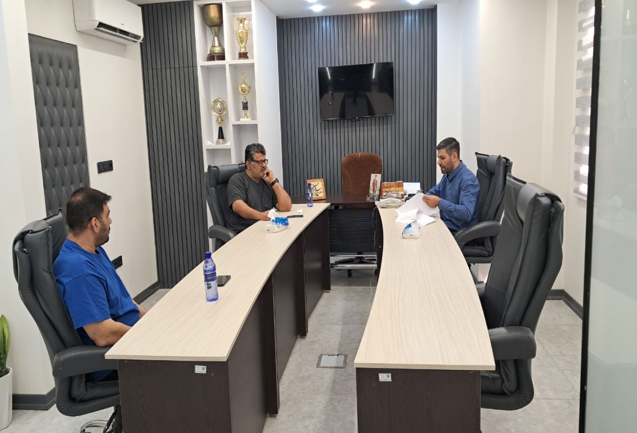 جلسه رئیس هیات کشتی استان با سرپرست مسابقات و نماینده کمیسیون داوران استان درخصوص مسائل و موارد داوری در مسابقات کشتی آزاد وفرنگی نونهالان استان